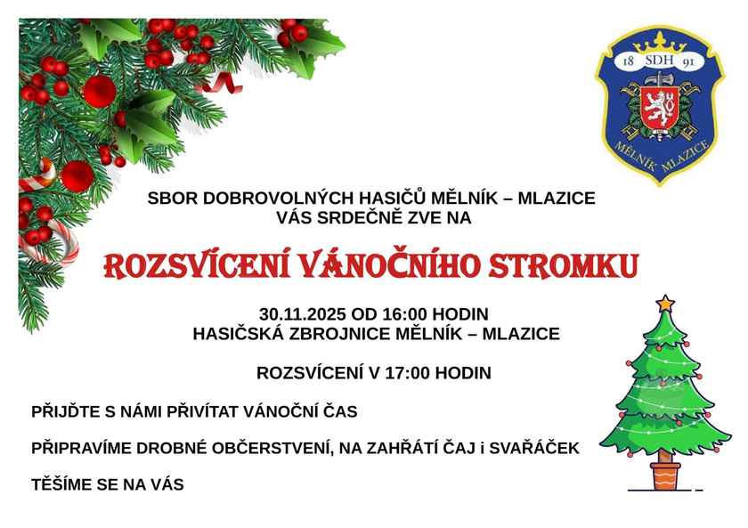 Sbor dobrovolných hasičů Mělník–Mlazice vás srdečně zve na tradiční zahájení adventu 🌟